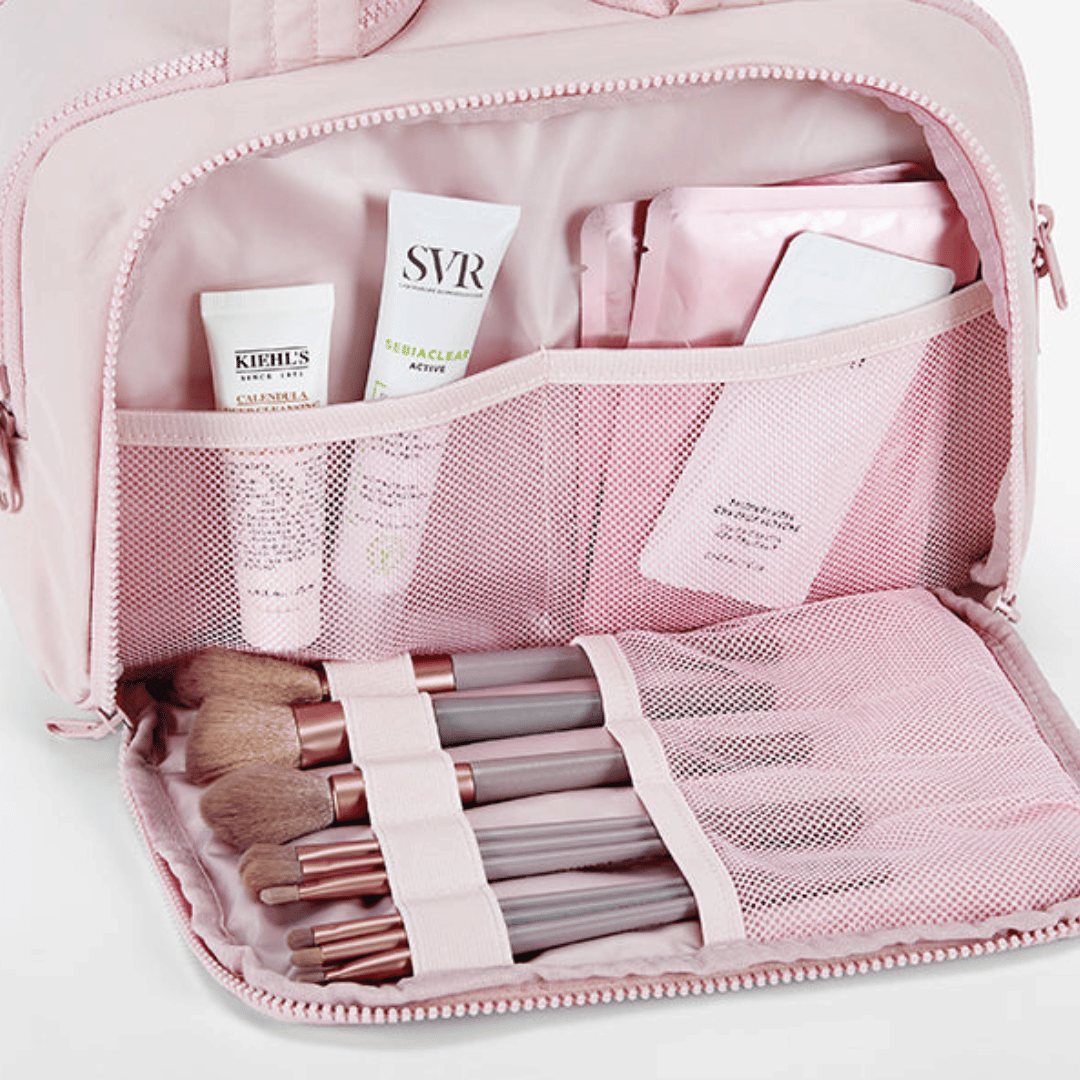 Internal elastic loops, mesh pockets and thoughtfully placed slots keep every brush, tube and tool exactly where you need it. With four compartments and a waterproof divider, the ELEA Organizer lets you travel with confidence — no more digging around.